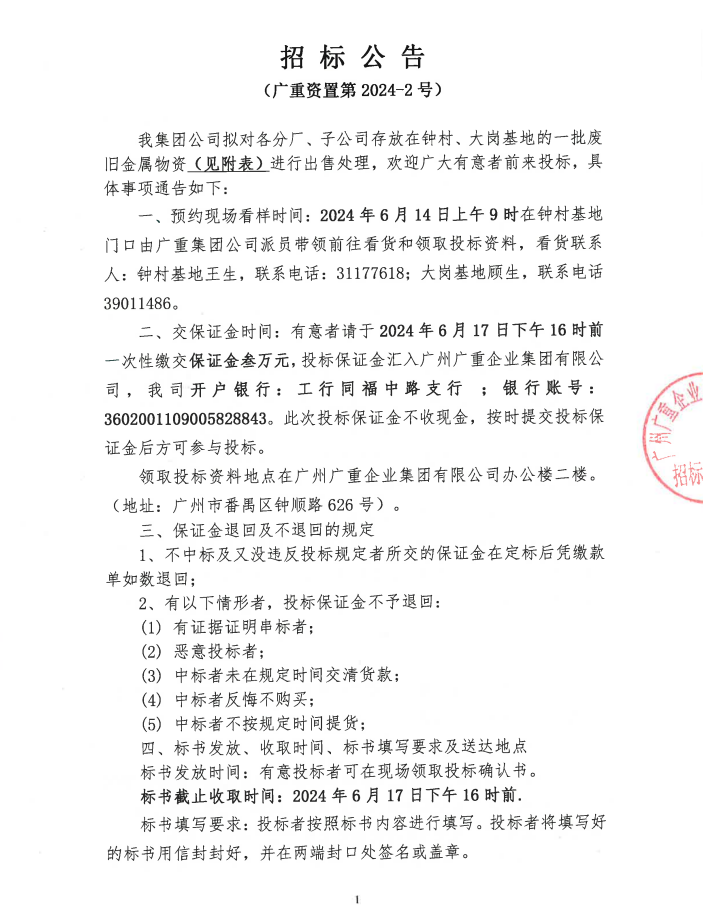 废旧金属物资处置(B体育app最新版下载资置2024-2号)
